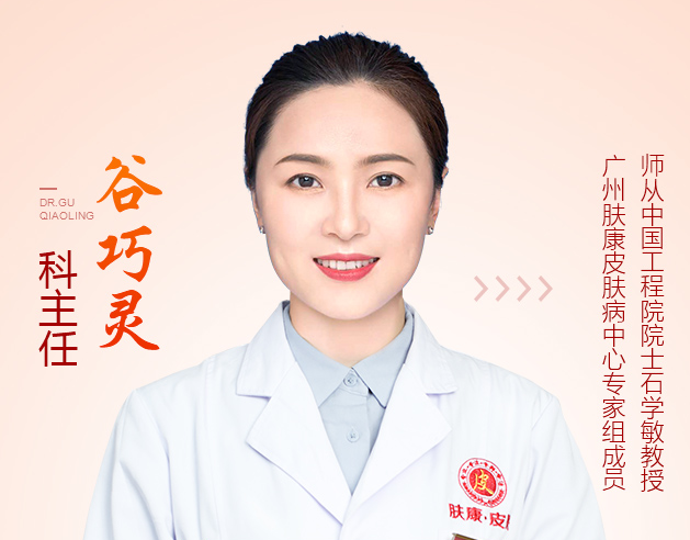 谷巧灵,广州肤康皮肤病医院科主任,从事皮肤病诊疗多年,坚持中医理论与实践相结合治疗皮肤病,特别是在治疗脱发、痤疮、疤痕,皮肤美容等疑难皮肤病症上疗效显著,得到老师石学敏院士的高度肯定。